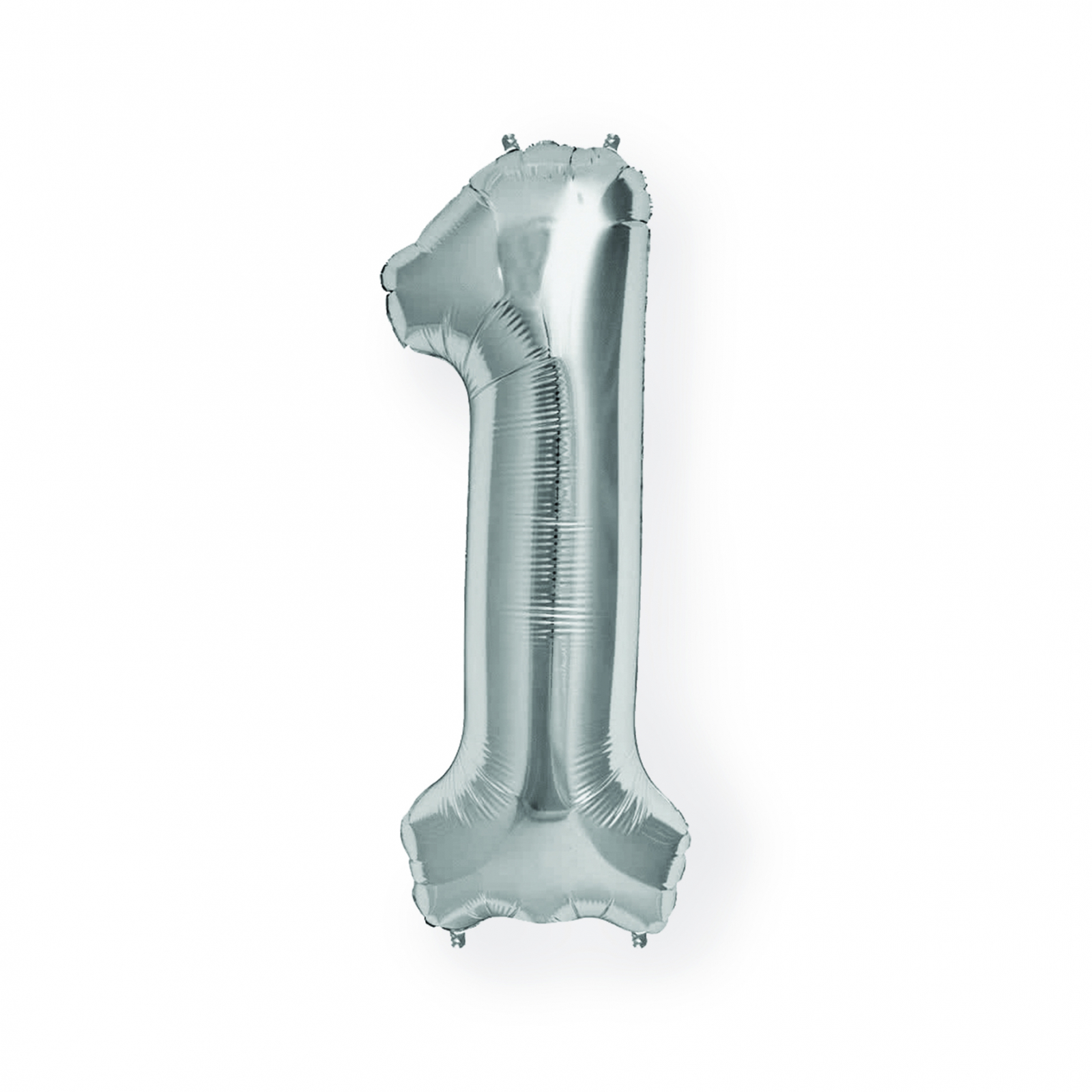 Balon folie cifra 1, culoare argintiu, inaltime 101 cm